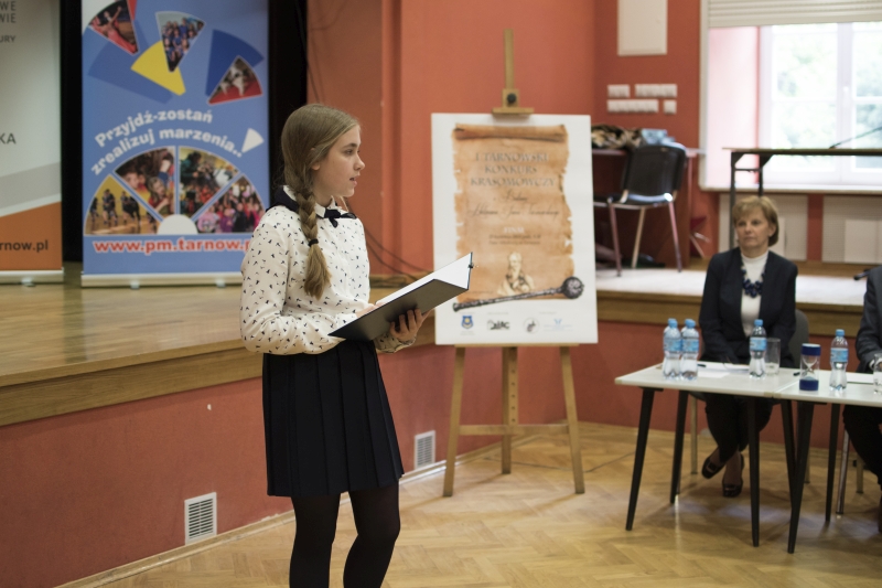 Po przesłuchaniach, jury w składzie: przewodnicząca Maria Zawada-Bilik (Dyrektor Wydziału Komunikacji Społecznej Urzędu Miasta Tarnowa), Jadwiga Binek (wicedyrektor Pałacu Młodzieży), Mariusz Szaforz (aktor Teatru im. Ludwika Solskiego w Tarnowie) i Bartosz Chmielnik (specjalista do spraw promocji Muzeum Okręgowego w Tarnowie), postanowiło przyznać w kategorii wiekowej 12 – 15 lat: I miejsce Alicji Krawczyk ze Szkoły Podstawowej nr 9 im. Orląt Lwowskich, II miejsce Zuzannie Marchwickiej ze Szkoły Podstawowej nr 9 im. Orląt Lwowskich, III miejsce Zofii Brzegowy ze Szkoły Podstawowej nr 3 im. Marii Konopnickiej.