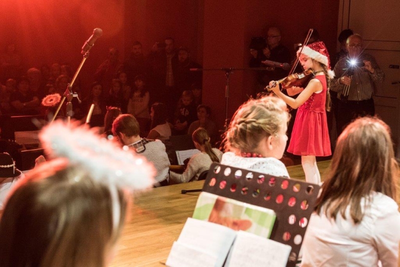 Na scenie, przed liczną publicznością, prezentowali się uczestnicy zajęć pracowni wokalnych i muzycznych Pałacu Młodzieży, prowadzonych przez nauczycieli: Małgorzatę Boruch, Ewę Rutkiewicz oraz Jerzego Macha. Wszystko w świątecznym otoczeniu i przy długich brawach zachwyconych widzów.