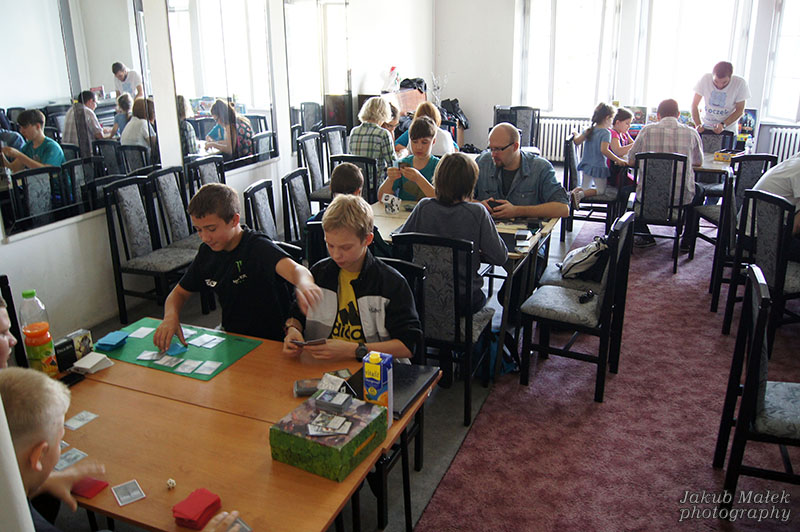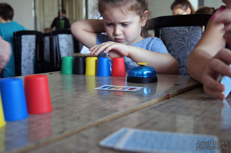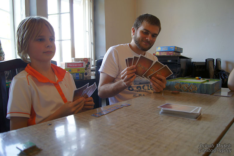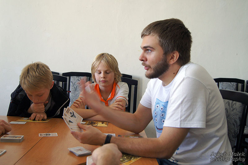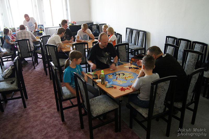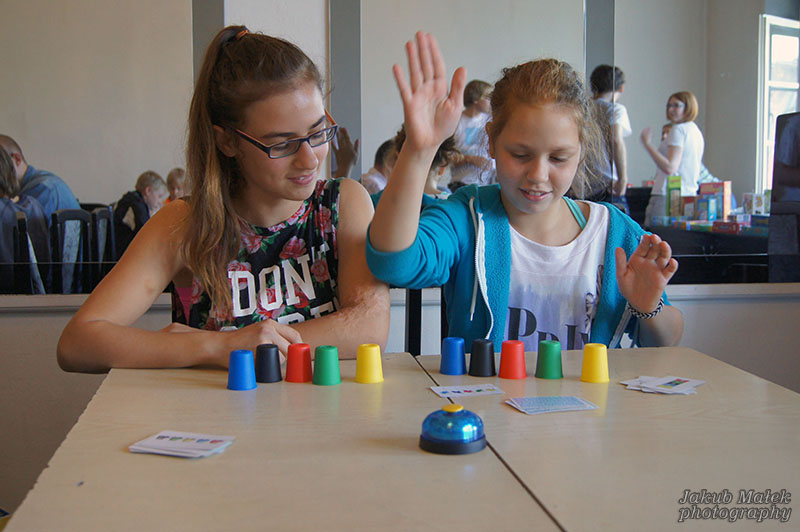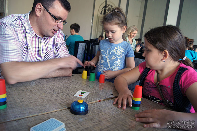Mimo pięknej jesiennej aury sprzyjającej spacerom, miłośnicy planszówek tłumnie odwiedzili w ostatnią sobotę Pałac Młodzieży. Największą popularnością cieszyły się gry: Speed Cups, Bang!, Carcassonne, Jungle Speed i Dobble. Odkryciem "Planszowiska" okazał się... Trójkąt Bermudzki - prosta i niezwykle pasjonująca gra. Zafascynowała ona tak samo dzieci jak i dorosłych. Spotkania z grami planszowymi, bitewnymi i strategicznymi są cykliczne - odbywają się w każdą drugą sobotę miesiąca.