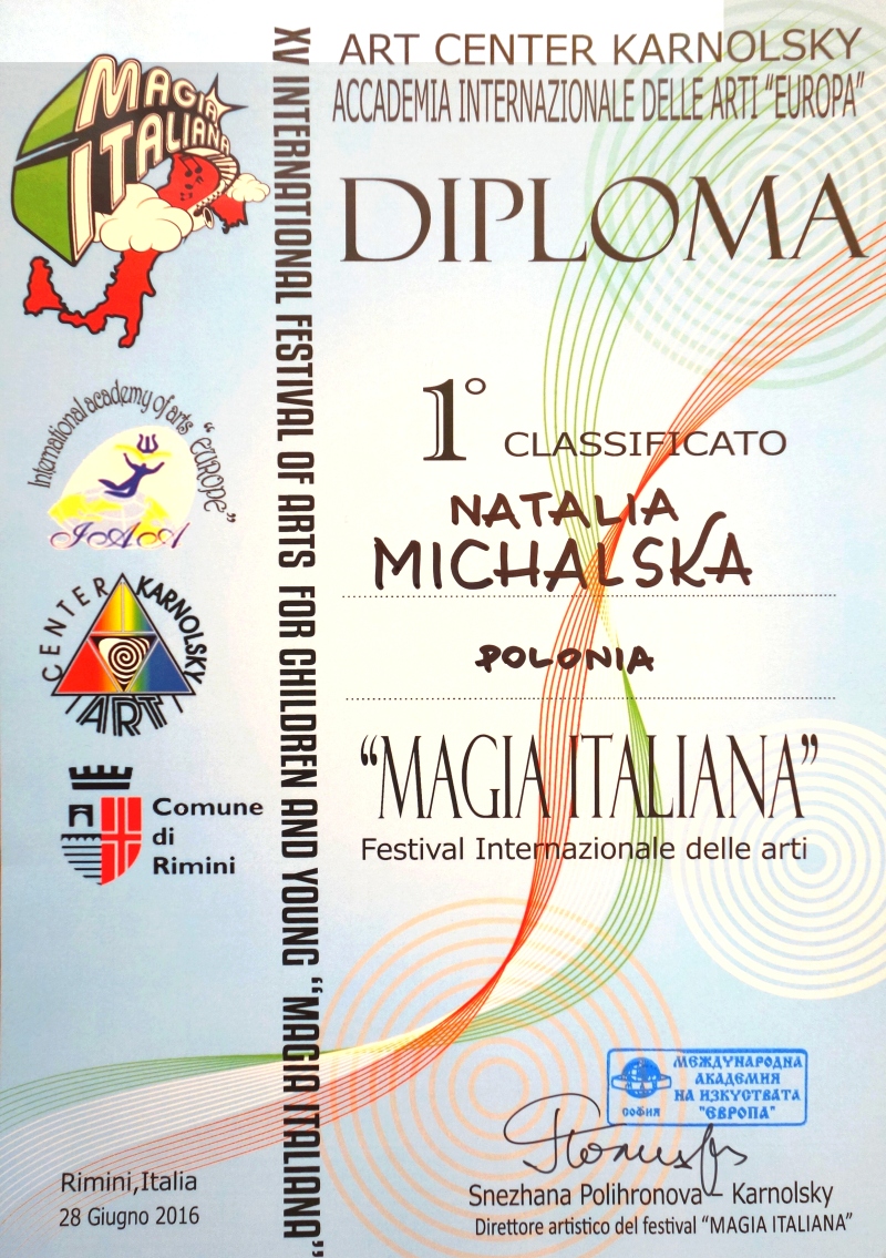 I miejsce Natalii Michalskiej na XIV Międzynarodowym Festiwalu Sztuki dla Dzieci i Młodzieży "MAGIA ITALIANA 2016"