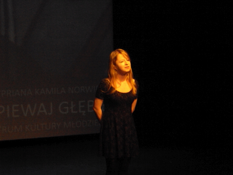 Wychowanki zajęć teatralnych Pałacu Młodzieży wraz z nauczycielem Izabelą Surdej wyjechały na konkurs na interpretację utworów Cypriana Kamila Norwida "Wypowiedz lub wyśpiewaj głębię”, który odbył się w Staromiejskim Centrum Kultury Młodzieży w Krakowie. Przesłuchania trwały dwa dni. W eliminacjach wojewódzkich Pałac Młodzieży reprezentowały: Karolina Kozioł, Magdalena Szwed, Aleksandra Zegar, Kornelia Babiarska i Patrycja Oleś. Uczestniczki wzięły udział w ciekawych, pokonkursowych warsztatach teatralnych z p. prof. PWST w Krakowie – Ziutą Zającówną, aktorką i reżyserką, a przede wszystkim jurorką konkursu.