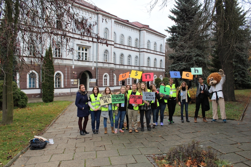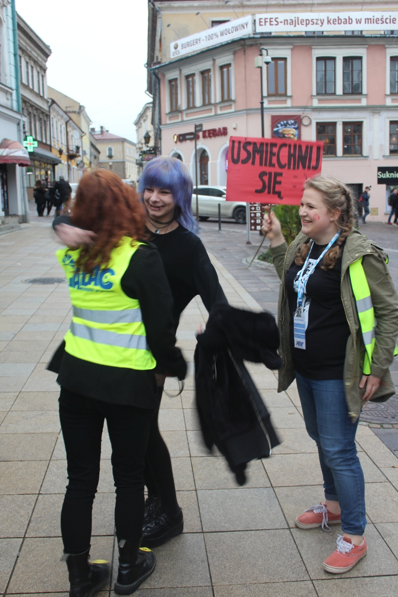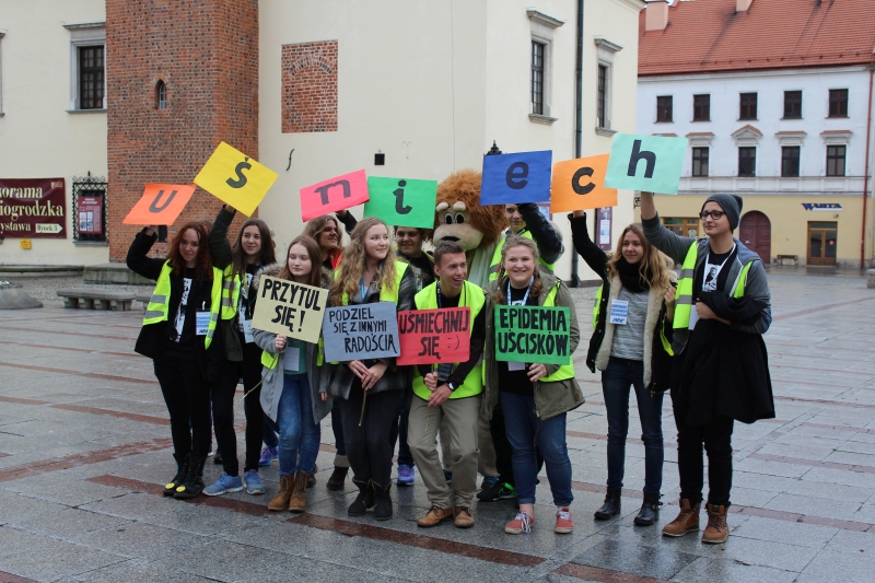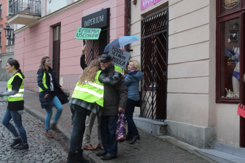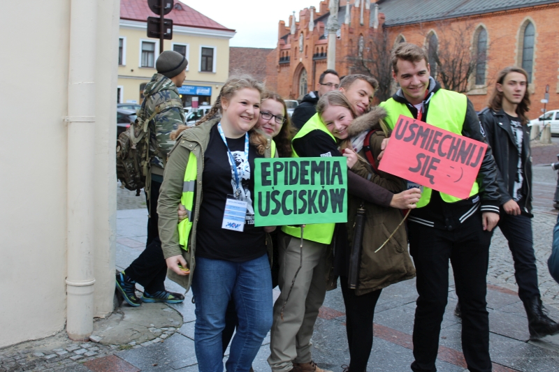 Wczoraj za sprawą „pałacowych” wolontariuszy z Młodzieżowego Centrum Wolontariatu Tarnów ogarnęła epidemia. Pozytywna epidemia. Młodzi ludzie wyszli na ulice miasta z transparentami, wesołymi hasłami i uśmiechem na ustach. Ich celem było sprawienie radości przechodniom. Rozdawali uśmiechy, uściski, wesołe papierowe minki, poprawiali jesienne nastroje mieszkańców. Obdarowani uściskiem i uśmiechem mieli za zadanie przekazywać tą pozytywną energię dalej. Inicjatywa młodzieży skupionej w MCW Pałacu Młodzieży w Tarnowie okazała się bardzo trafiona, zainteresowanie przechodniów było ogromne. Wielu z nich proponowało aby organizować takie happeningi jak najczęściej. Wydarzenie z zainteresowaniem śledziły tarnowskie media. Główny patronat medialny objęło Radio RDN a także Grupa Nieformalna Aspiranci oraz Portal Media i Młodzież.