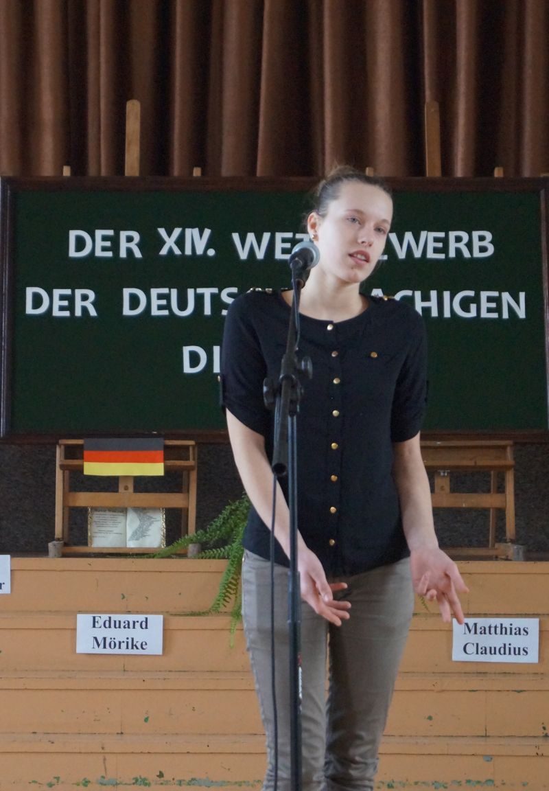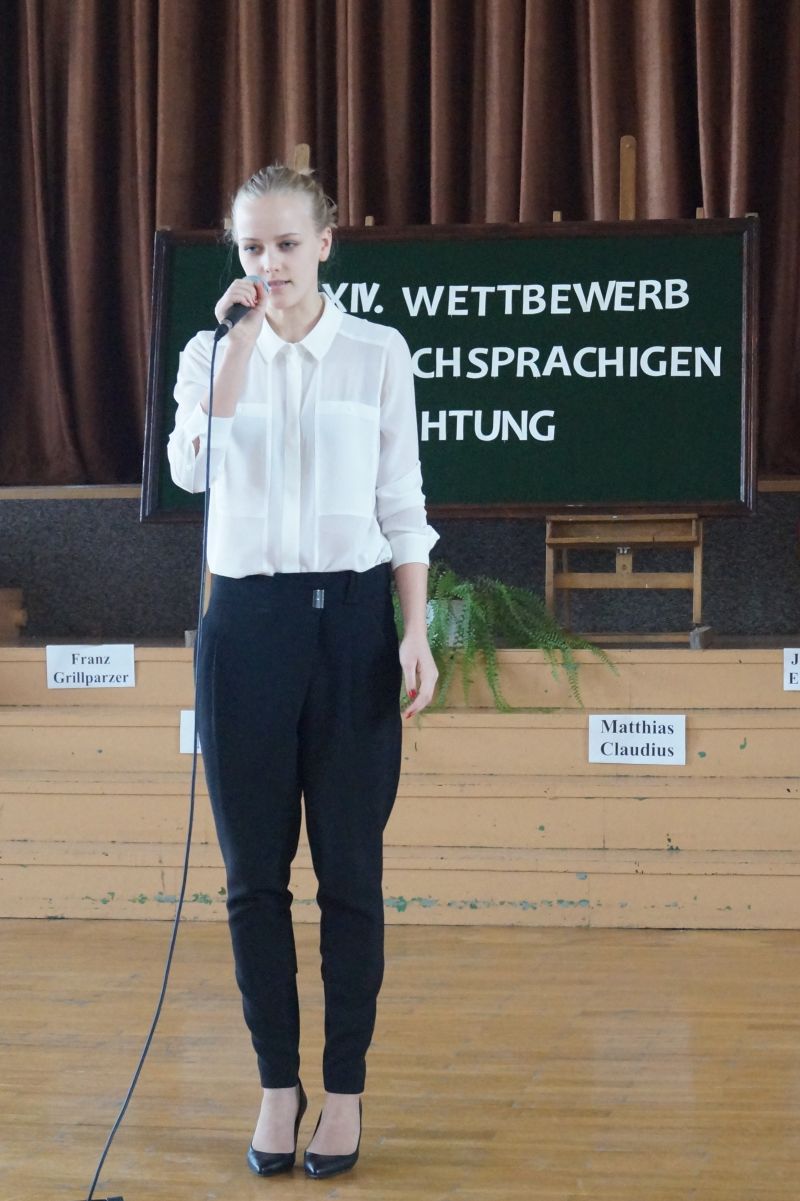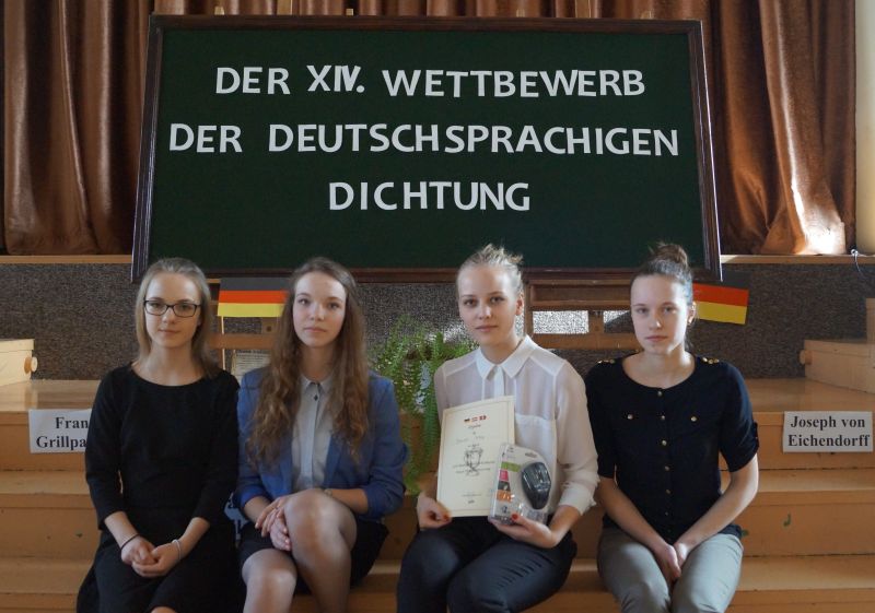 Uczestniczka zajęć pracowni języka niemieckiego Pałacu Młodzieży w Tarnowie, Dominika Potępa, zajęła II miejsce w kategorii szkół ponadgimnazjalnych w XIV Międzyszkolnym Konkursie Recytatorskim Poezji Niemieckojęzycznej organizowanym przez IV Liceum Ogólnokształcące w Tarnowie i skierowanym do młodzieży z powiatów tarnowskiego, brzeskiego i bocheńskiego. Tematem przewodnim tegorocznej edycji była przyroda i jej wpływ na stany emocjonalne człowieka. Jury złożone z pracowników Zakładu Filologii Germańskiej PWSZ w Tarnowie oceniało prezentację wierszy pod względem poprawności fonetycznej, interpretacji oraz ogólnego wyrazu artystycznego. Dominika została doceniona za recytację wiersza Ericha Kästnera „Die Wälder schweigen”. Naszą placówkę reprezentowały także Zuzanna Marszalik, Natasza Duch i Martyna Padło. Gratulujemy wszystkim uczestniczkom!