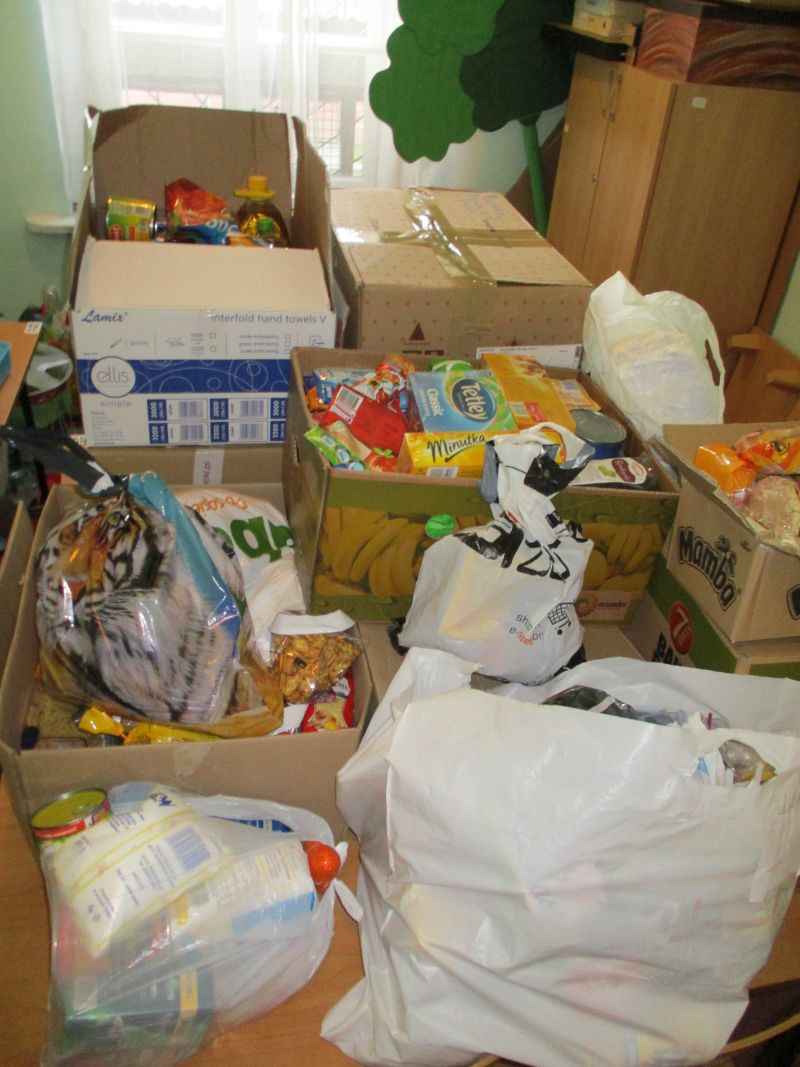 W tym roku do listy zbieranych produktów spożywczych, dodaliśmy produkty oraz przedmioty, które przydadzą się mamom oraz ich dzieciom a także pomogą Siostrom prowadzącym Dom Samotnej Matki w Tarnowie. Ponieważ pomoc, którą zaoferowali nauczyciele, uczniowie oraz ich rodzice była ogromna, postanowiliśmy obdzielić paczkami żywnościowymi jeszcze większą liczbę potrzebujących osób. Efektem zbiórek jest więc w tym roku zorganizowana Wigilia dla Samotnych i Starszych, duża ilość paczek z żywnością oraz środkami higienicznymi, pielęgnacyjnymi, zabawkami i ubrankami przekazana do Domu Samotnej Matki, paczki żywnościowe do Domu Samotnego Mężczyzny a także kilkanaście paczek z żywnością i słodyczami dla potrzebujących rodzin wskazanych przez pedagogów szkolnych oraz PCK.