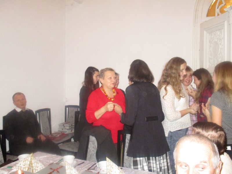 Spotkanie uroczyście rozpoczął Pan Dyrektor Pałacu Młodzieży Jerzy Kosiba, który w imieniu swoim oraz Pani Wicedyrektor Jadwigi Binek złożył gościom życzenia świąteczne. Następnie ksiądz Paweł Cyz ze Zgromadzenia Księży Filipinów pobłogosławił uczestników oraz opłatki, którymi podzielili się zgromadzeni, składając sobie wzajemnie ciepłe i serdeczne życzenia. Wolontariusze podali przygotowany przez siebie poczęstunek a część artystyczną rozpoczęli wychowankowie Pałacu Młodzieży z pracowni muzycznej Pani Małgorzaty Boruch, którzy pięknie wykonali koncert kolęd i pastorałek, a także zaangażowali w kolędowanie wszystkich przybyłych. Dodatkowo słodki poczęstunek przygotowali dla gości uczniowie Zespołu Szkół Niepublicznych pod opieką Pani pedagog Katarzyny Chorzępy. Dziękujemy również szkołom za przygotowanie pięknych stroików, którymi udekorowaliśmy salę.