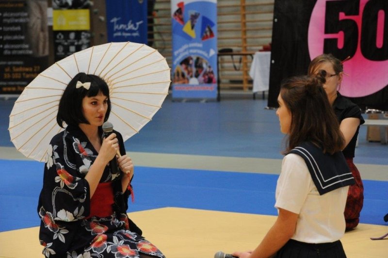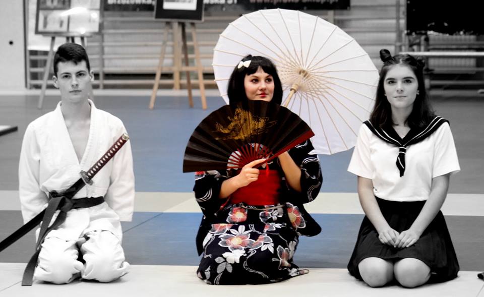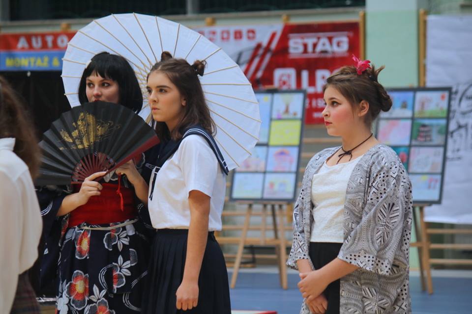 Inscenizacje przypowieści japońskich w wykonaniu wychowanków zajęć teatralnych PM podczas Wieczoru Japońskiego.