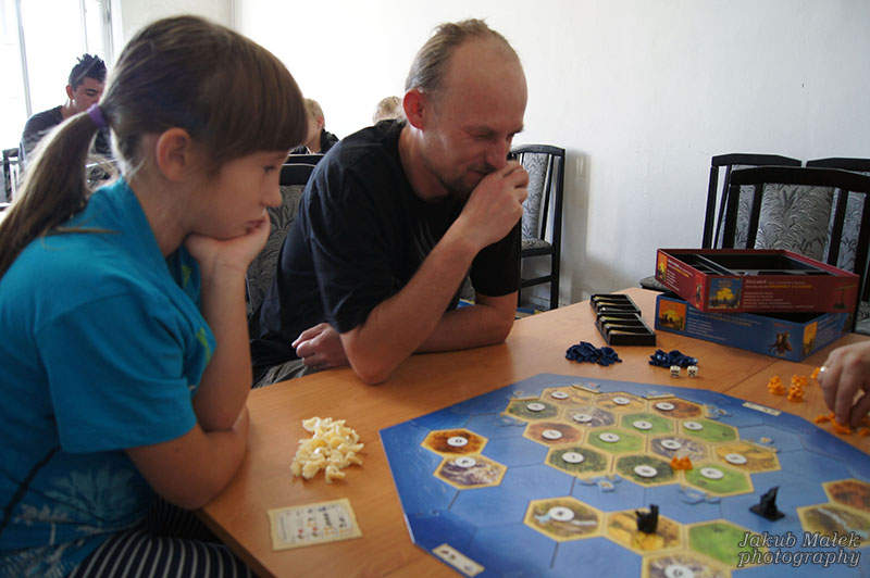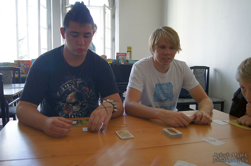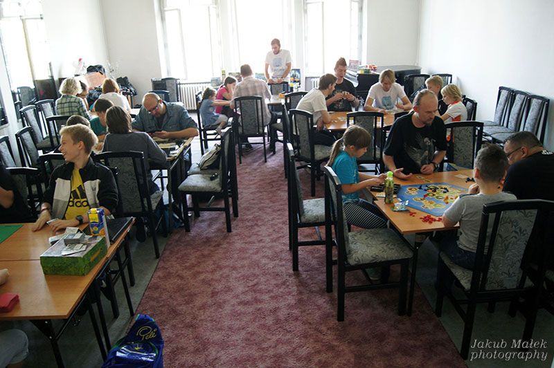Mimo pięknej jesiennej aury sprzyjającej spacerom, miłośnicy planszówek tłumnie odwiedzili w ostatnią sobotę Pałac Młodzieży. Największą popularnością cieszyły się gry: Speed Cups, Bang!, Carcassonne, Jungle Speed i Dobble. Odkryciem "Planszowiska" okazał się... Trójkąt Bermudzki - prosta i niezwykle pasjonująca gra. Zafascynowała ona tak samo dzieci jak i dorosłych. Spotkania z grami planszowymi, bitewnymi i strategicznymi są cykliczne - odbywają się w każdą drugą sobotę miesiąca.