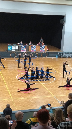 Rozgrywki sportowe uświetniły swym występami dziewczęta z sekcji Gimnastyki Akrobatycznej Pałacu Młodzieży prowadzonej przez Panią Jelenę Żołyniak.. Młoda pracownia Pałacu Młodzieży już drugi rok gra dla Wielkiej Orkiestry Świątecznej Pomocy. Rocznik naboru 2019 - 2020 miał właśnie swój pierwszy występ podczas tegorocznego Finału WOŚP. W zbiorowym układzie wystąpiły 3 grupy razem 25 osób. W układzie tanecznym zostały wykorzystane przybory gimnastyczne takie jak obręcze oraz wstążki i zostały zawarte elementy akrobatyki. Układ został wykonany do muzyki Johanna Straussa.