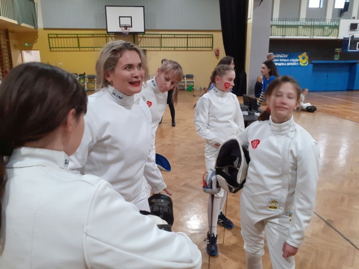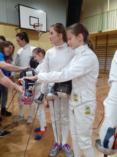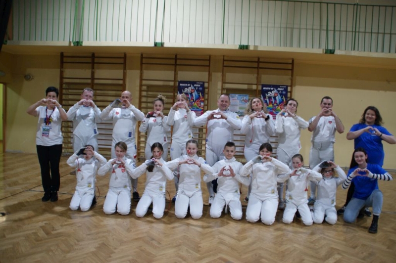i uśmiechnięci. Gorące podziękowania rodzinom, które walczyły i hojnie wsparły tę szczytną akcję. Oprócz wpłaty wpisowej od każdej drużyny (minimum 50 zł. a były i dużo wyższe) szermierze wylicytowali za 100 zł kubek WOŚP. Kubek trafił do Kornelii Padło.
