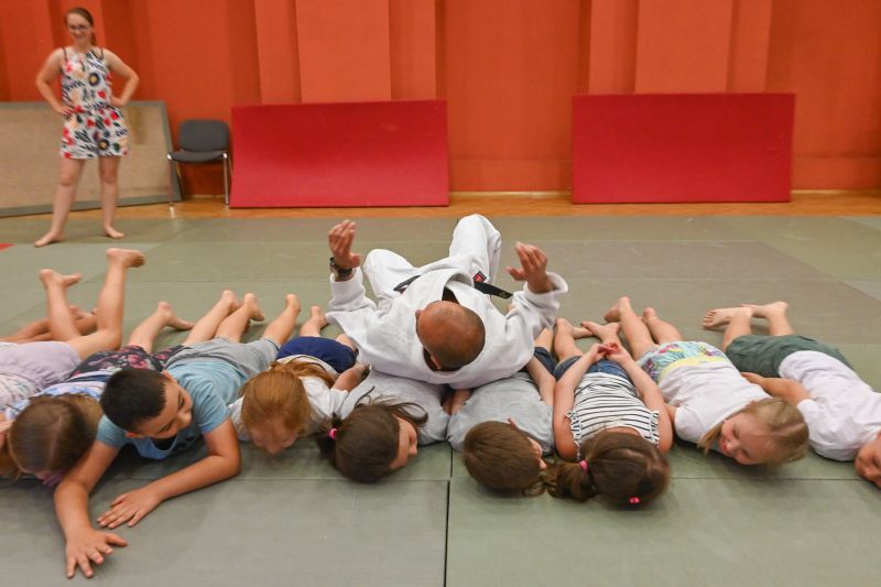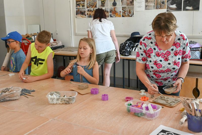Zakończył się pierwszy tydzień wakacji w Pałacu Młodzieży w Tarnowie. W tym roku w ramach półkolonii organizowanych przez miasto dla uczniów szkół podstawowych gościmy w głównym budynku Pałacu półkolonistów z różnych tarnowskich szkół. Dzieci świetnie się bawią na zajęciach m.in. plastycznych, wokalnych, tanecznych, logicznego myślenia, ceramiki, modelarstwa, kroju i szycia, ale także judo i szermierki. W tym tygodniu gościliśmy w Pałacu dzieci uczestniczące w półkoloniach w szkołach podstawowych nr 9, 14, 17 oraz 23. Z kolei w tarnowskich szkołach, które organizują półkolonie nasi nauczyciele pracowni sportowych prowadzą ciekawe zajęcia m.in. piłki ręcznej, koszykówki i gimnastyki artystycznej.