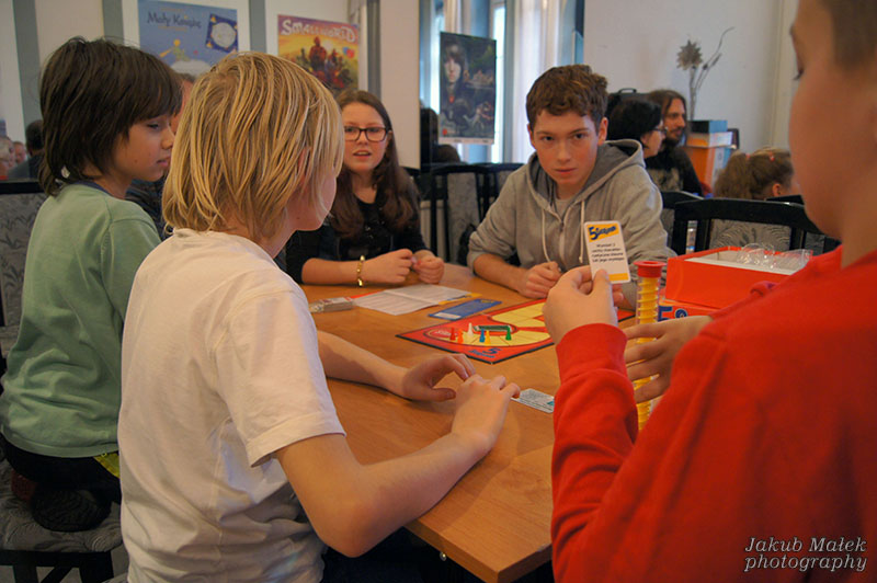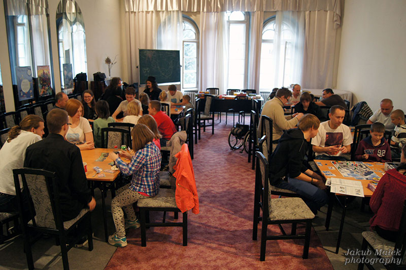 Tłumnie, rodzinnie, wesoło – tak było na listopadowym „Planszowisku”. Z miesiąca na miesiąc grono miłośników gier planszowych zdecydowanie się powiększa. Powiększa się też pałacowa biblioteka gier planszowych. Dzięki współpracy z REBEL Centrum Gier, ostatnie „Planszowisko” obfitowało w nowości – Splendor i K2 mają już swoich wiernych graczy.