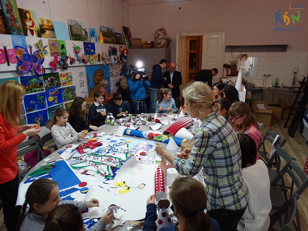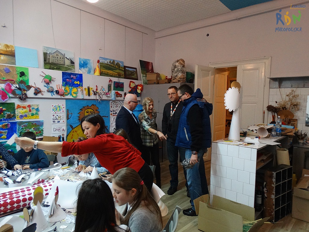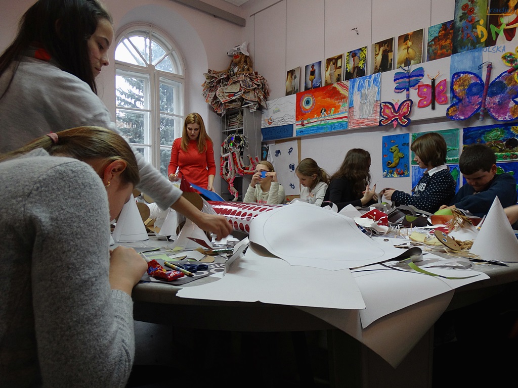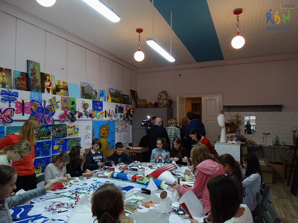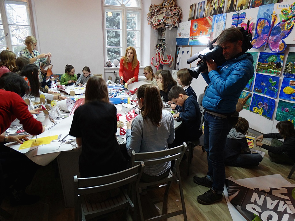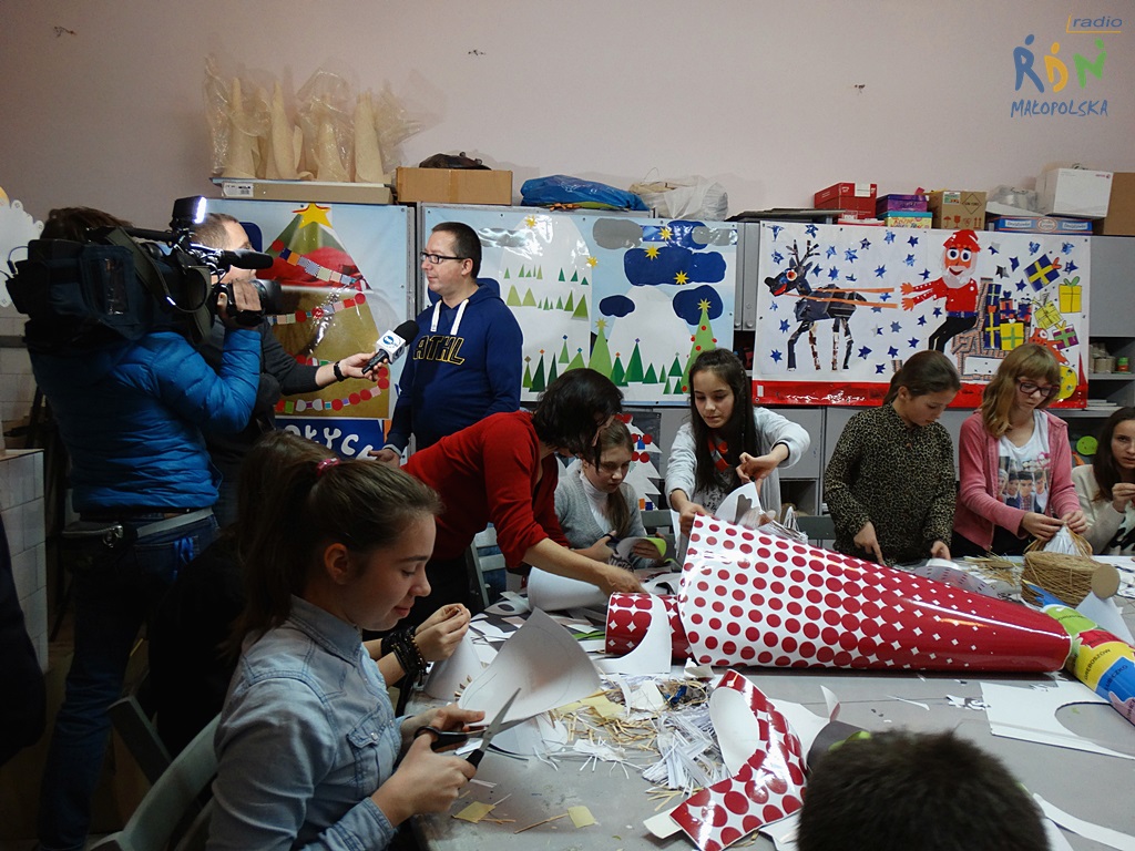 Do akcji przyłączyły się także firmy Bodoni–Reklama Wizualna i Spóldzielnia Inwalidów „Tarnospin”, przekazując do artystycznego przetwarzania odpady produkcyjne i resztki materiałów. To właśnie kolorowe ścinki folii, kawałki materiałów tekstylnych, tekturki i słoma idealnie wpasowują się w konwencję świątecznych ozdób. Wielką frajdę i radość z takich twórczych działań mają dzieci - zwłaszcza, że efekty ich pracy są zachwycające. Zachwycające, nietypowe i nowatorskie – tak podsumowała dziś pałacowe działania ekipa TVN 24, która obserwowała przetwarzanie banerów na świąteczne cudeńka.