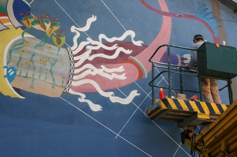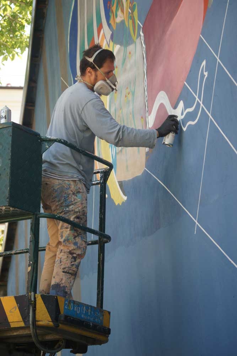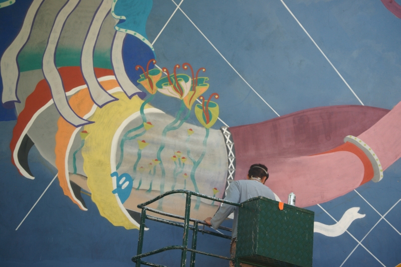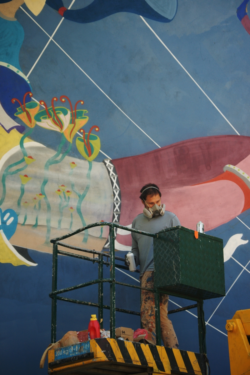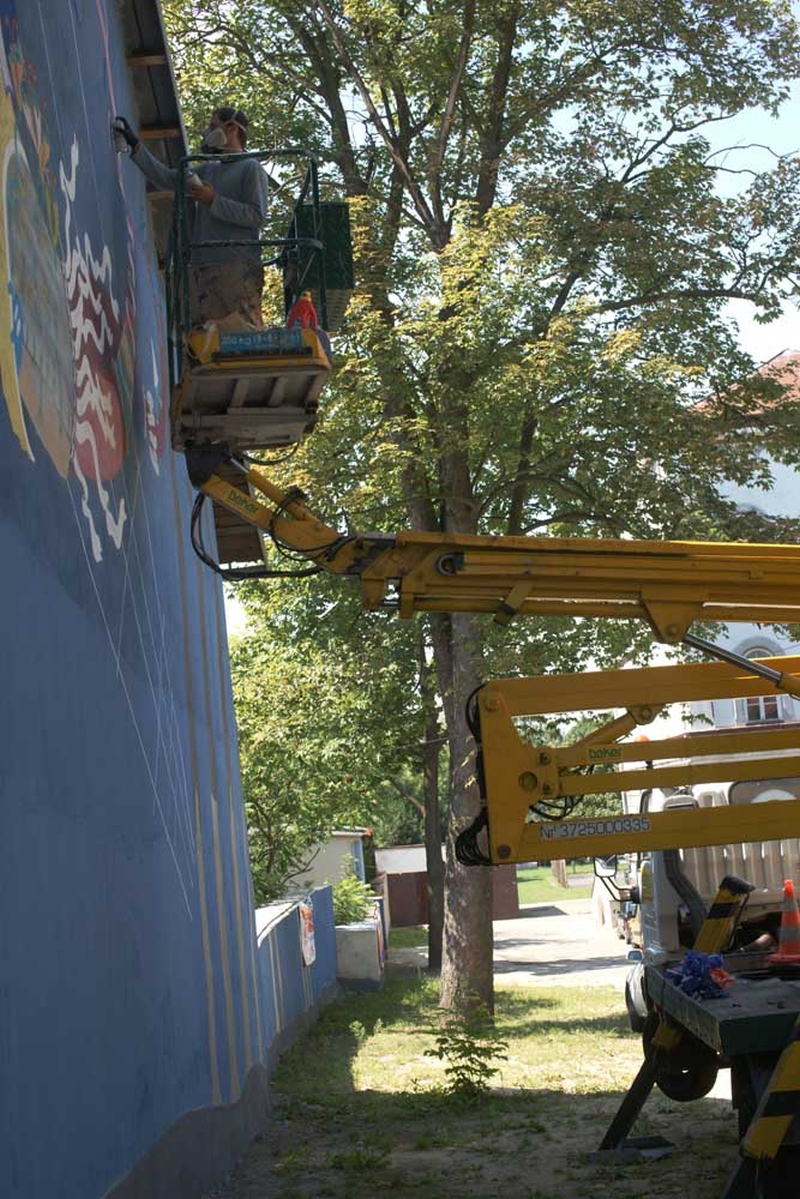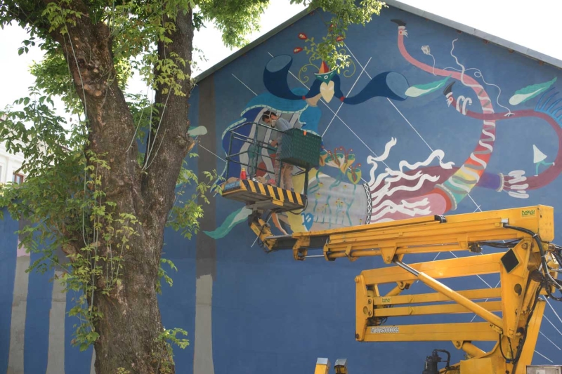 Są już widoczne pierwsze elementy powstającego muralu.