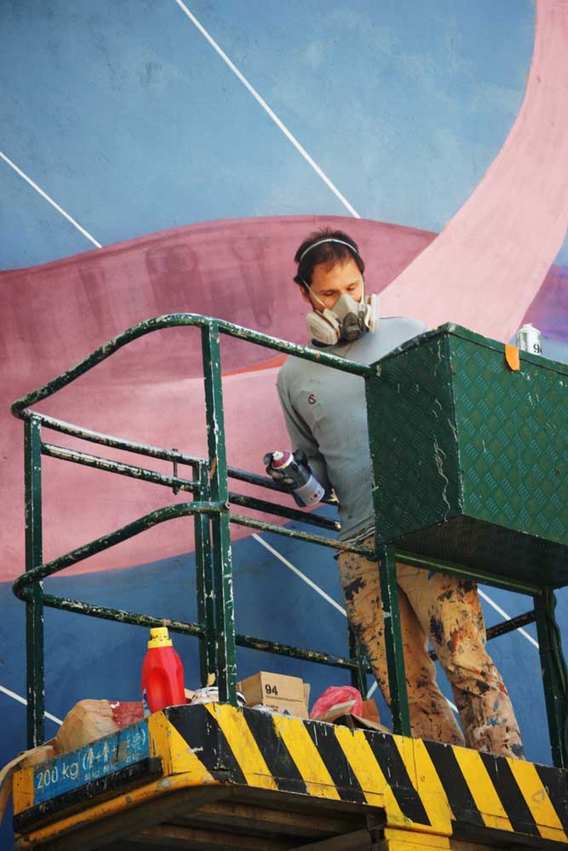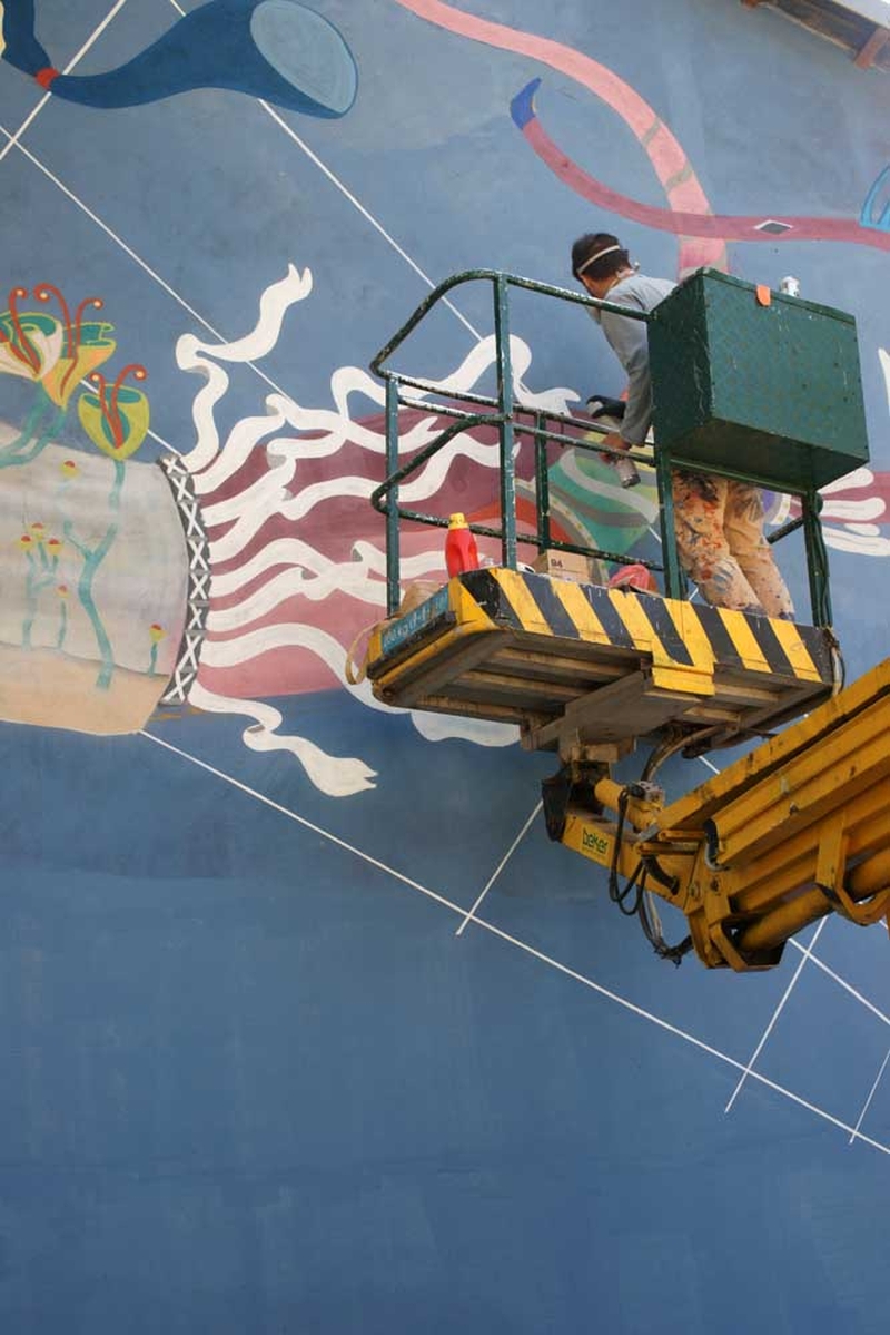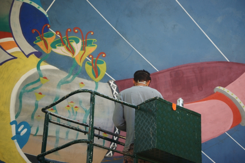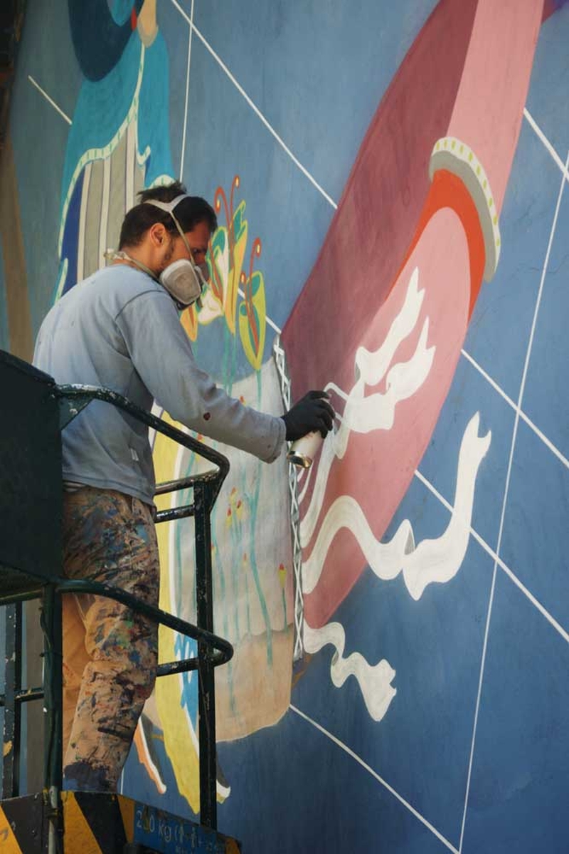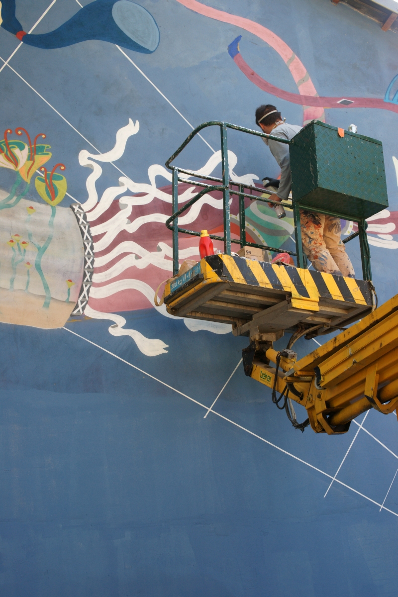 Są już widoczne pierwsze elementy powstającego muralu.