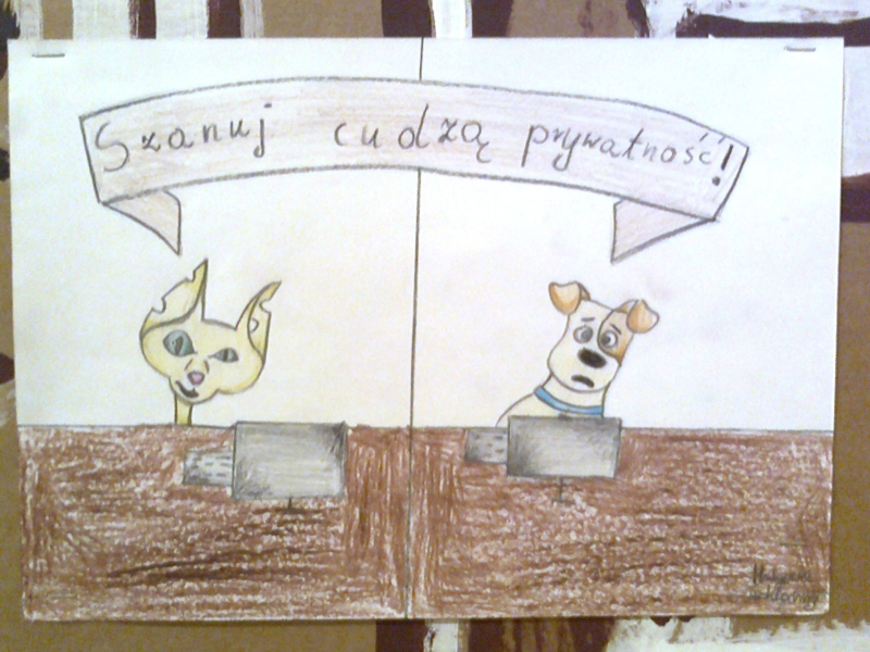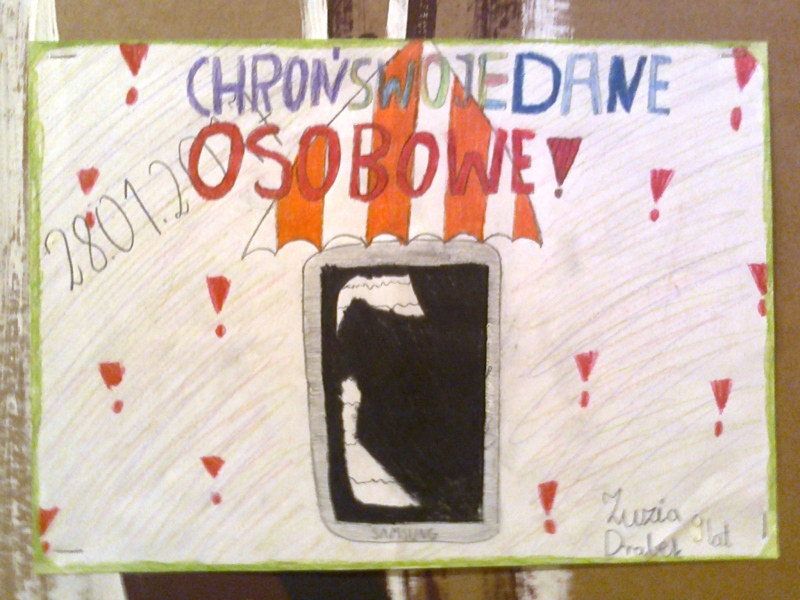 Uczestnicy zajęć pracowni plastycznej Pałacu Młodzieży, podopieczni Barbary Leszczyńskiej, zainspirowani tematyką ochrony danych osobowych i prawa do prywatności wykonali kilkanaście prac, które można oglądać na wystawie w naszej placówce oraz w galerii internetowej. Dzieła młodych twórców z pewnością dostarczą nam inspiracji oraz zachęcą do refleksji nad potrzebą ochrony danych i naszej prywatności. Czy czujesz się anonimowy w Internecie? Czy wiesz jakie działania podejmują aplikacje w twoim smartfonie? Czy w dobie społeczeństwa informacyjnego mamy szansę na ochronę swojej prywatności? Dajmy sobie szansę na przemyślenie tego problemu.