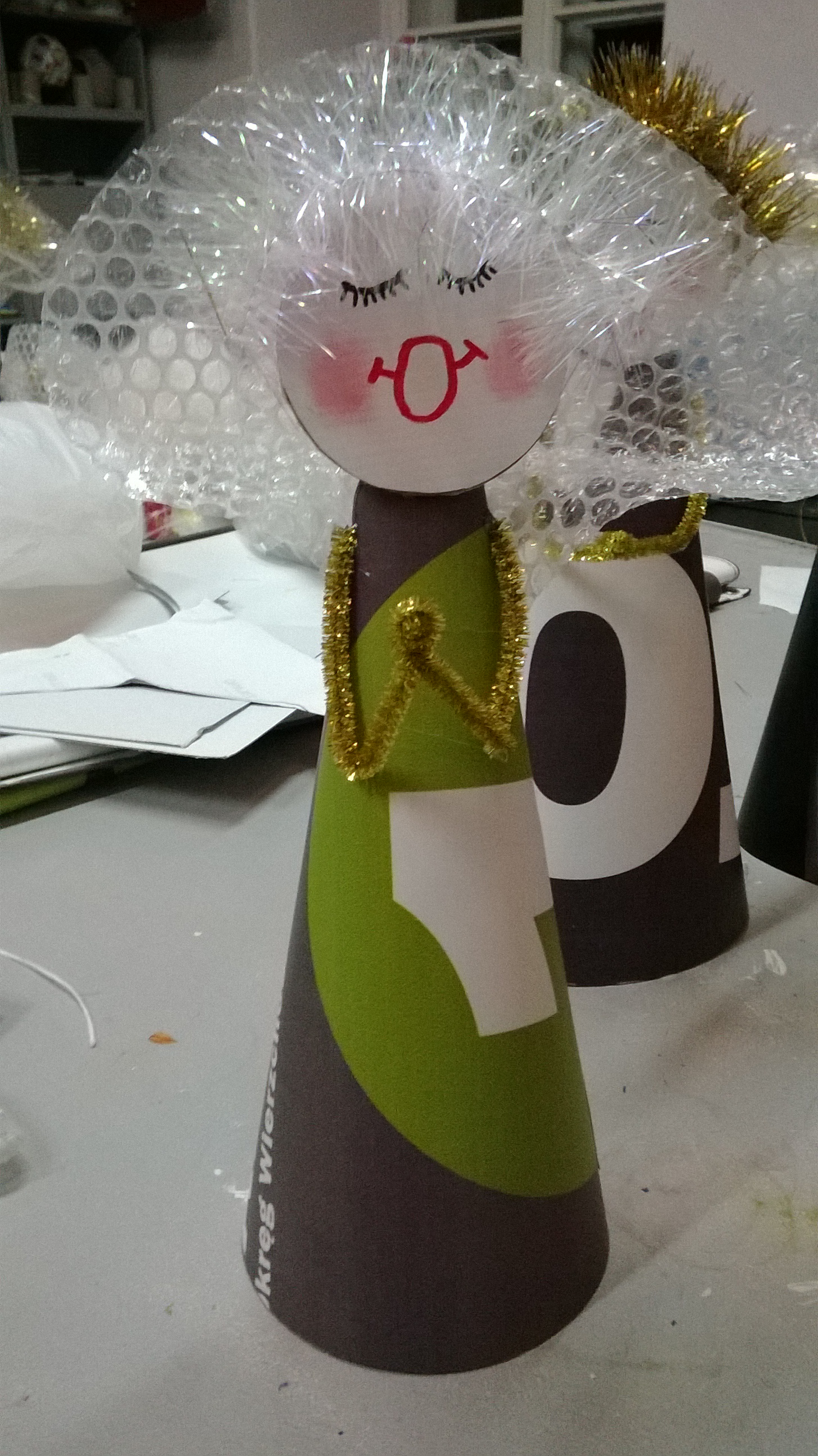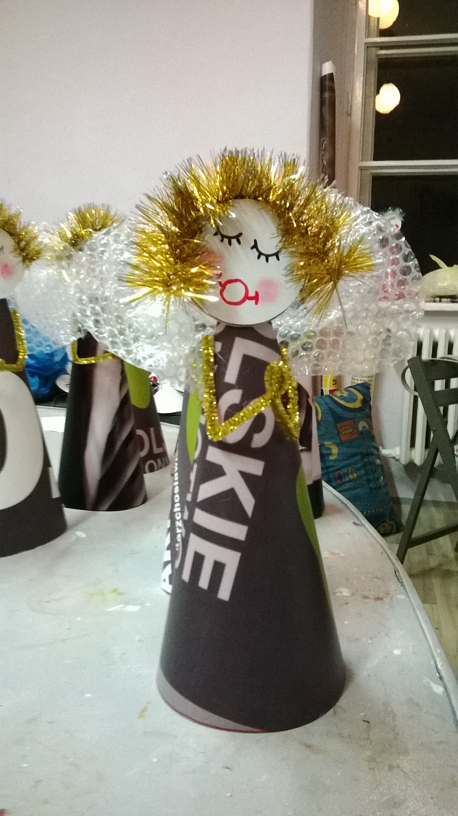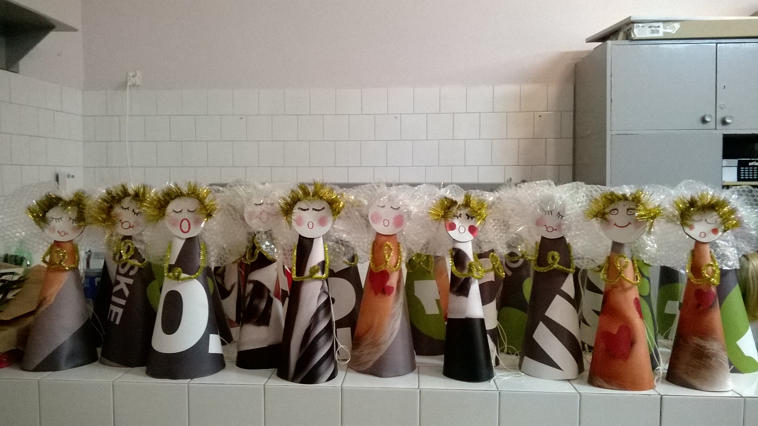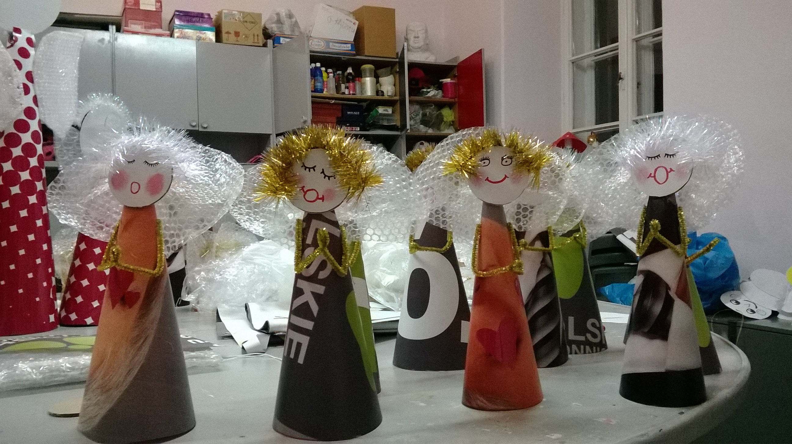 „Drugie życie banerów” – ANIOŁYBanery od kandydatów startujących w wyborach samorządowych 2014 r., tektury z Tarnospinu i kawałki łańcuchów choinkowych – czyli jak zrobić coś kreatywnego. Pod okiem Pani Małgorzaty Kądzieli powstały piękne anioły, które zostały przeznaczone na kiermasz charytatywny i udekorowanie choinki na tarnowskim Placu Sienkiewicza. Do akcji włączyły się wolontariuszki z Klubu Aktywnej Młodzieży z Panią Iwoną Kędroń, wychowankowie pracowni plastycznej Pani Małgorzaty Kądzieli, dzieci ze świetlicy ze Szkoły Podstawowej nr 3 w Tarnowie i uczestnicy Uniwersytetu Trzeciego Wieku. – zobacz zdjęcia