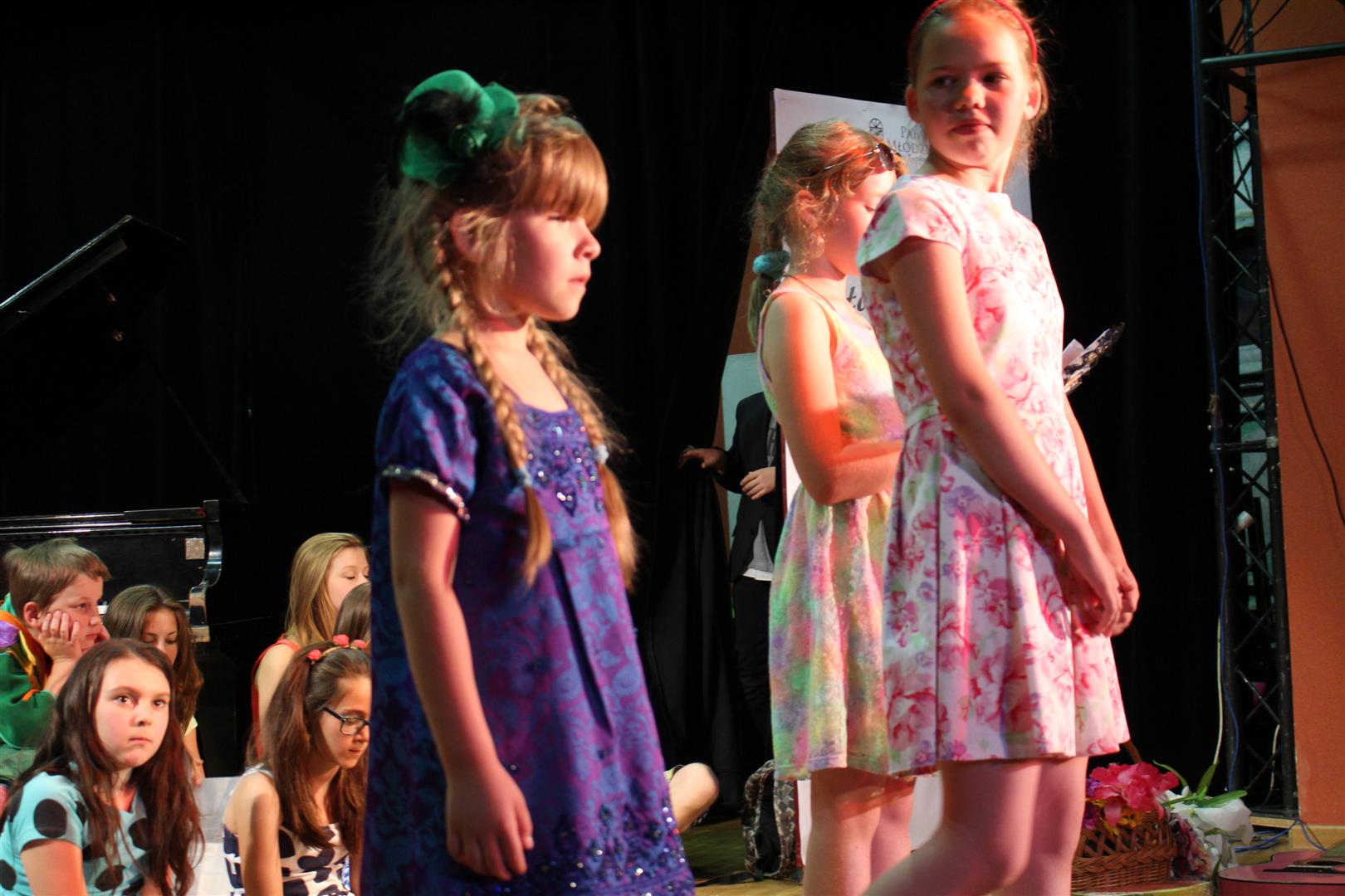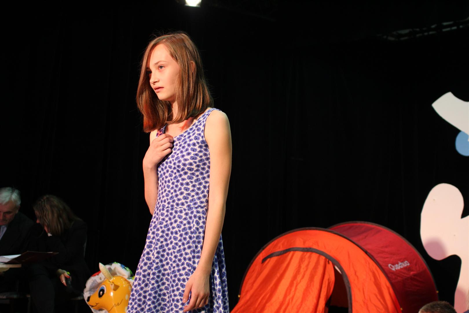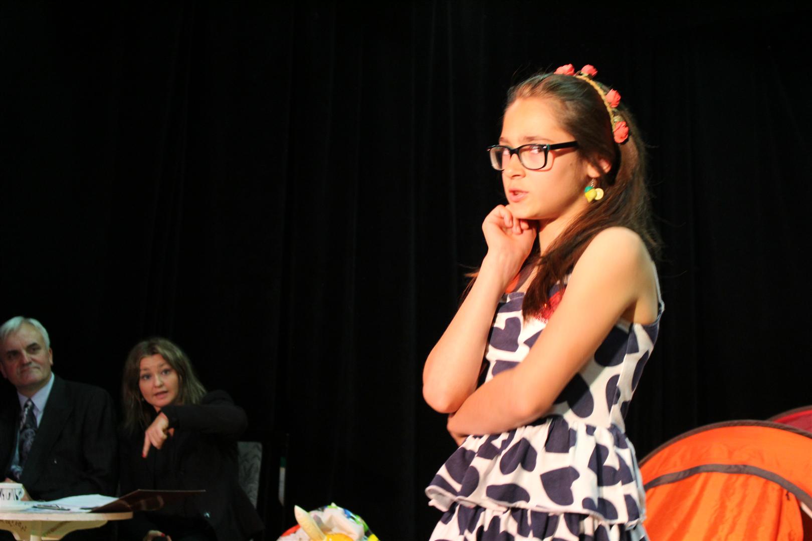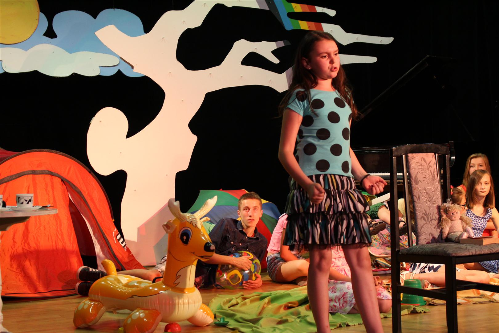 Spotkanie rozpoczęło się inscenizacją tekstu piosenki Jonasza Kofty ,,Radość o poranku”. Usłyszeliśmy nie tylko recytacje, ale można było również podziwiać inscenizacje rożnych tekstów literackich: komediowych, jak i filozoficznych. Wychowankowie z Pracowni Języka Polskiego zaprezentowali m.in. inscenizację wiersza: ,,Zakochane parasolki” H. Niewiadomskiej, ,,Zapach czekolady” D. Wawiłow, ,,Żabę” J. Brzechwy, czy ciekawą inscenizacją oryginalnego wiersza ortograficznego W. Gawdzika pt: ,,Smutna królewna”. Uczestnicy, zarówno z grupy młodszej, jak i starszej, przedstawili wiersze o różnej tematyce; od żartobliwej, komediowej, po filozoficzną, poważną różnych twórców, m.in. K.I. Gałczyńskiego, J. Brzechwy, D. Wawiłow, L.J. Kerna, A. Osieckiej, czy W. Szymborskiej, M. Konopnickiej, J. Brela , które uczyli sie na zajęciach, prezentowali na różnych konkursach recytatorskich. A wszystko to ,,przeplatane” z pięknymi, różnymi tematycznie wystąpieniami muzycznymi wychowanków z Pracowni Wokalnej. Scena teatralna PM ,,zamieniła się” w plażę, było dużo letnich akcentów, młodzi aktorzy zamiast za kurtyną, znajdowali się na leżakach, kocach, a na scenie ustawiono nawet namiot. Pojawiły się także kompozycje z owoców i kwiatów- wszystko to stanowiło elementy scenografii przygotowanej przez Izabelę Surdej z pomocą rodziców uczestników zajęć. Podczas imprezy panowała miła i sympatyczna atmosfera. Zaciekawiona i zachęcona tym , co dzieje się na scenie młoda widownia, zaczęła dołączać do będących na scenie wychowanków. Spotkanie zakończyło się inscenizacją wiersza L. J. Kerna : ,, Lato, lato…” znanego głownie jako tekst piosenki. Wychowankowie zakończyli występ słowami: ,,Lato, lato, lato czeka… a po lecie czeka na nas …. Pałac Młodzieży ! ”. Imprezę wspólnie poprowadzili: Izabela Surdej i Jerzy Świtek. Spotkanie poetycko-muzyczne trwało ok. 2 godziny i dostarczyło wiele miłych przeżyć oraz wrażeń.