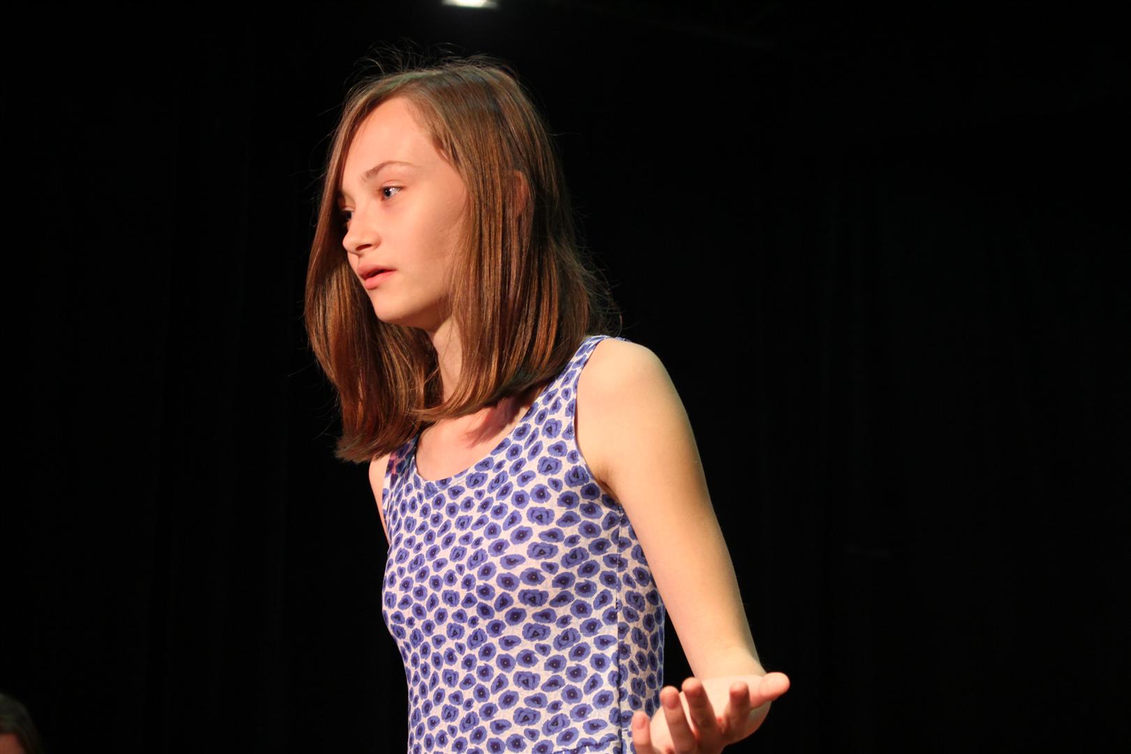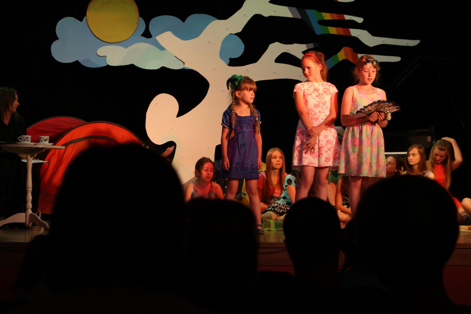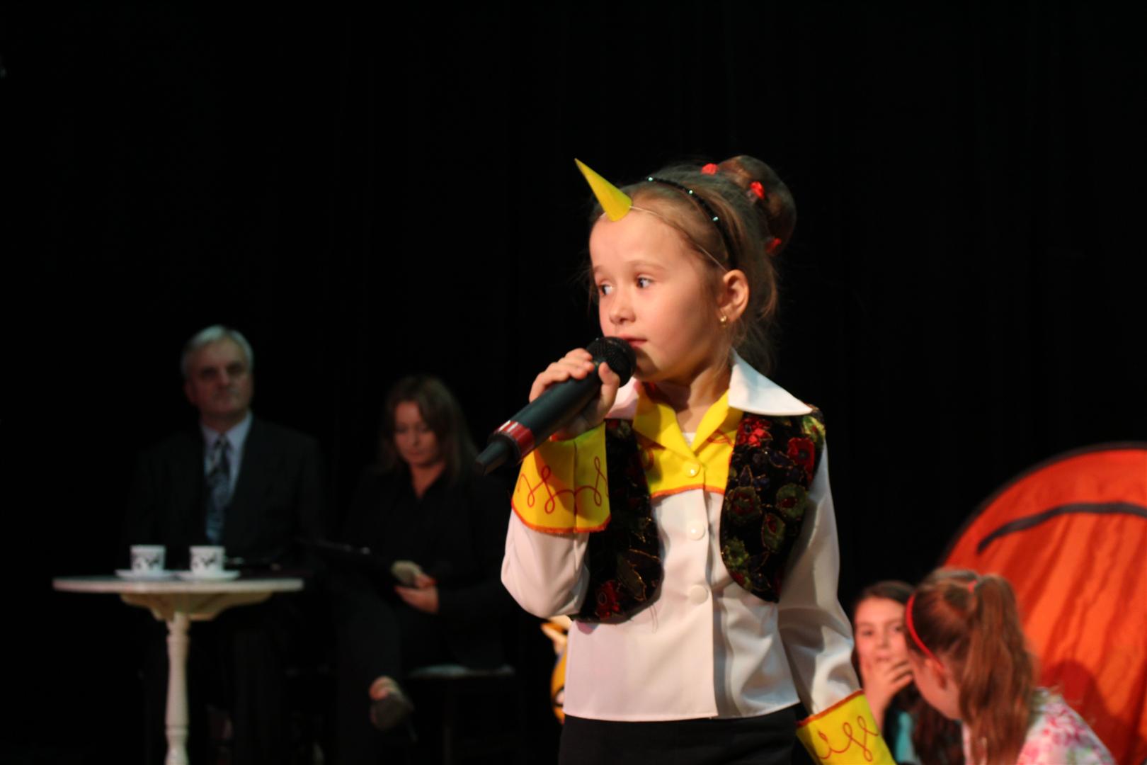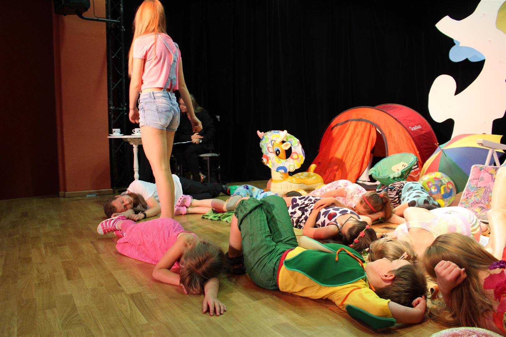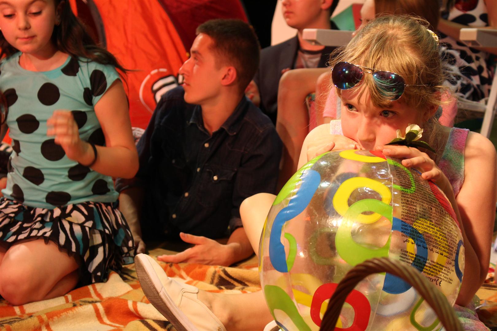 Spotkanie rozpoczęło się inscenizacją tekstu piosenki Jonasza Kofty ,,Radość o poranku”. Usłyszeliśmy nie tylko recytacje, ale można było również podziwiać inscenizacje rożnych tekstów literackich: komediowych, jak i filozoficznych. Wychowankowie z Pracowni Języka Polskiego zaprezentowali m.in. inscenizację wiersza: ,,Zakochane parasolki” H. Niewiadomskiej, ,,Zapach czekolady” D. Wawiłow, ,,Żabę” J. Brzechwy, czy ciekawą inscenizacją oryginalnego wiersza ortograficznego W. Gawdzika pt: ,,Smutna królewna”. Uczestnicy, zarówno z grupy młodszej, jak i starszej, przedstawili wiersze o różnej tematyce; od żartobliwej, komediowej, po filozoficzną, poważną różnych twórców, m.in. K.I. Gałczyńskiego, J. Brzechwy, D. Wawiłow, L.J. Kerna, A. Osieckiej, czy W. Szymborskiej, M. Konopnickiej, J. Brela , które uczyli sie na zajęciach, prezentowali na różnych konkursach recytatorskich. A wszystko to ,,przeplatane” z pięknymi, różnymi tematycznie wystąpieniami muzycznymi wychowanków z Pracowni Wokalnej. Scena teatralna PM ,,zamieniła się” w plażę, było dużo letnich akcentów, młodzi aktorzy zamiast za kurtyną, znajdowali się na leżakach, kocach, a na scenie ustawiono nawet namiot. Pojawiły się także kompozycje z owoców i kwiatów- wszystko to stanowiło elementy scenografii przygotowanej przez Izabelę Surdej z pomocą rodziców uczestników zajęć. Podczas imprezy panowała miła i sympatyczna atmosfera. Zaciekawiona i zachęcona tym , co dzieje się na scenie młoda widownia, zaczęła dołączać do będących na scenie wychowanków. Spotkanie zakończyło się inscenizacją wiersza L. J. Kerna : ,, Lato, lato…” znanego głownie jako tekst piosenki. Wychowankowie zakończyli występ słowami: ,,Lato, lato, lato czeka… a po lecie czeka na nas …. Pałac Młodzieży ! ”. Imprezę wspólnie poprowadzili: Izabela Surdej i Jerzy Świtek. Spotkanie poetycko-muzyczne trwało ok. 2 godziny i dostarczyło wiele miłych przeżyć oraz wrażeń.