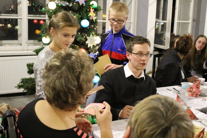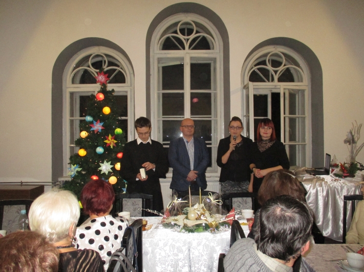 Spotkanie uroczyście rozpoczął Dyrektor Pałacu Młodzieży Jerzy Kosiba, który złożył gościom życzenia świąteczne. Następnie Diakon Krzysztof ze Zgromadzenia Księży Filipinów pobłogosławił uczestników oraz opłatki, którymi podzielili się zgromadzeni, składając sobie wzajemnie ciepłe i serdeczne życzenia. Wolontariusze podali przygotowany przez siebie poczęstunek, a część artystyczną rozpoczęli wychowankowie Pałacu Młodzieży z pracowni muzycznej Pani Małgorzaty Boruch, którzy pięknie wykonali koncert kolęd i pastorałek, a także zaangażowali w kolędowanie wszystkich przybyłych. Wychowankowie placówki wsparcia dziennego EkstraKlasa działającej w Pałacu Młodzieży, przekazali również gościom piękne, wykonane ręcznie kartki świąteczne.